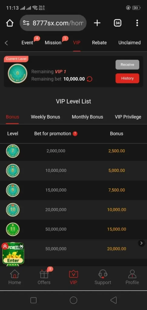 The game give you welcome bonuses, daily rewards, also weekly rewards, and promotions to attract players.1777SX Game