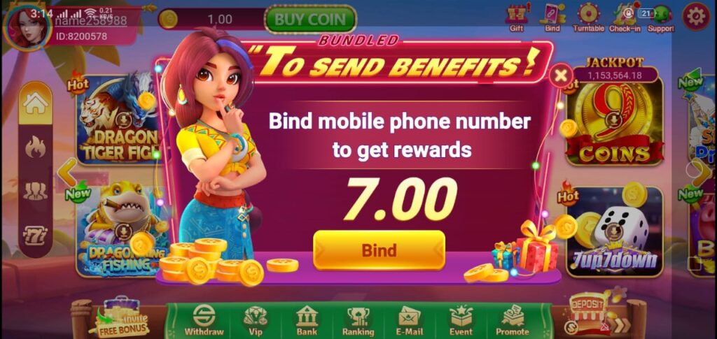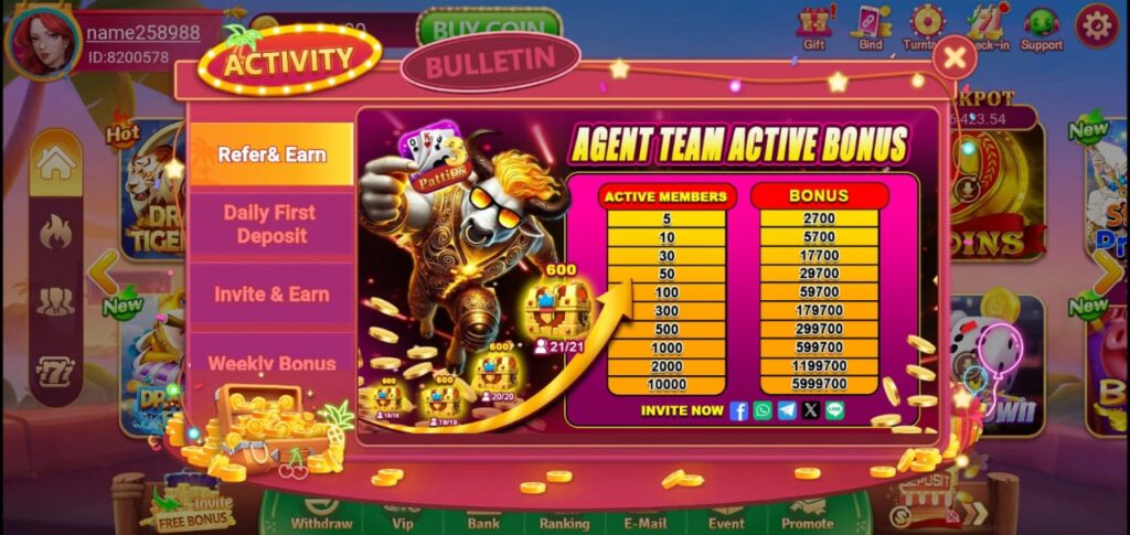 When you log in daily after 7/24 hours, the game gives you free chips, Spain, and rewards. And here you can also get welcome bonus, level up bonus and referral bonus.
